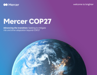 At this year’s COP27, Mercer’s Rich Nuzum, Cara Williams, Helga Birgden will be hosting a panel discussion – “Harnessing the power of global capital to target local climate challenges” – alongside esteemed guests Rick Lacaille, Senior Advisor, StateStreet, and Gertraud Wollanksy, Senior Advisor on climate issues in the Austrian Ministry for Climate Action. They will debate and discuss client actions, opportunities and challenges to investing for net zero pathways. If you’re attending in-person, we encourage you to register and join in the conversation. You don’t need to have an accreditation to attend.