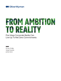 At COP26 finance took a central role in the global climate agenda for the first time, under the banner of GFANZ. And while industry leaders have already made big strides to build new capabilities, launch new propositions, and to adapt the way they do business, there is far more to do. Corporate banks will be at the centre of driving and helping their clients navigate the transition to a net zero economy. This paper focuses on actions required within corporate banking divisions and sets out five key priorities to make climate commitments real.