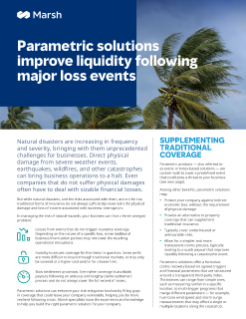 Traditional insurance coverage may not be sufficient to cover both physical damage and the loss of income associated with business interruption. As natural disasters and associated risks increase, parametric solutions can help enhance companies’ risk mitigation efforts by filling gaps in coverage that could leave them vulnerable.