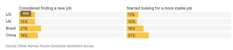 Businesses can’t afford to wait for stability. Higher food and energy prices already are impacting consumers, forcing them to change how they shop, save and work. More than 40% are buying less, and over a quarter are delaying major purchases, according to a monthly survey of consumers in the United States, the United Kingdom, China, and Brazil by the Oliver Wyman Forum.