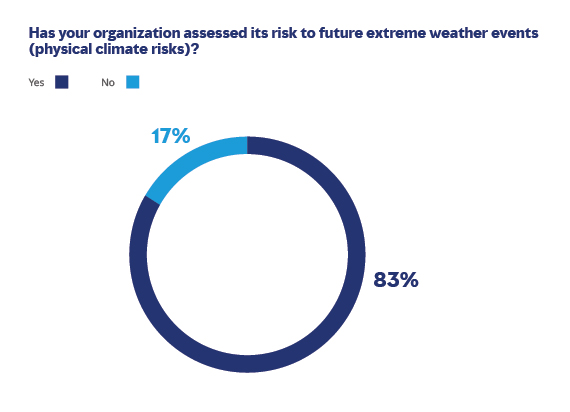 The question of how to respond has emphatically reached corporate decision makers: 83% said that they were considering the impacts of climate physical risk or have conducted some form of climate risk assessment to improve their understanding.