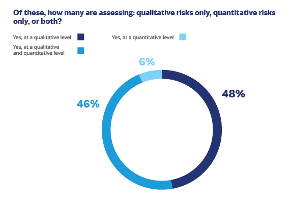 Lack of quantitative assessments. While more than 8 in 10 business leaders are analyzing their climate risk (83%), nearly half (48%) revealed that they are currently only performing qualitative analyses.