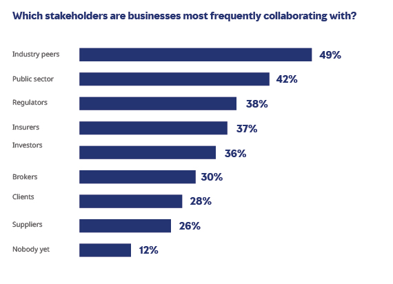 The survey also highlights that business leaders are engaging with external stakeholders as they manage the impacts of climate change. With 90% of respondents confirming they have discussed climate adaptation with outside partners, the results show a healthy spread across a number of key stakeholders. Their most significant engagement was with industry partners (49%), the public sector (42%) and regulators (38%).